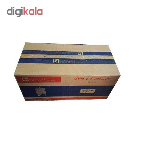منبع تحت فشار50 لیتری پمپ آب ساخت مشترک ایران و ترکیه با تیوپ سفا ایتالیا. می باشد در تولید منبع 50 لیتری تحت فشار هاماک از تیوپ sefa ایتالیایی استفاده شده است. این تیوپ ها از ترکیب کائوچو طبیعی و مواد EPDM که سازگاری کامل با آب شرب بهداشتی دارند ساخته شده اند..منبع تحت فشار یا مخزن تحت فشار که در میان عموم مردم با عنوان مخزن پمپ آب نیز شناخته می شود عموماً در کنار و یا روی پمپ آب نصب می شود و نقش مهمی را در جهت کاهش خرابی پمپ ها ایفا می کند..منیع تحت فشار به واسطه آبی که درون خود ذخیره می کند موجب می شود تا با هر بار باز شدن شیر آب نیاز نباشد پمپ آب شروع به کار کند. در نتیجه باعث کاهش مصرف برق و استهلاک پمپ آب شده و طول عمر پمپ را افزایش می دهد.نقش دیگر مخازن تحت فشار، کنترل ضربه آب در زمان روشن و خاموش شدن مکرر پمپ آب است.جهت تعیین ظرفیت مخزن مورد نیاز، هر چقدر ظرفیت مخزن مورد استفاده بیشتر باشد تاثیر آن بیشتر میباشد. پیشنهاد میگردد به ازای هر واحد حدود ۱۰ لیتر برای حجم مخزن در نظر گرفته شود.