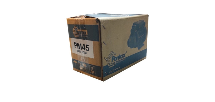 پمپ های مدل PM45 پنتاکس مناسب برای آبرسانی منازل ویلایی یک طبقه و کوچک، سیستم های کوچک آبیاری، تخلیه آب سیستم های تهویه مطبوع کوچک و یا استفاه در سایر تجهیزات می باشد.(آب تمیز).عبارت IR در مدل بیانگر آن است که این نوع از پمپ های پنتاکس در ایران مونتاژ شده و از قطعات اصلی به کار گرفته شده است.بنابراین کیفیت بسیار مطلوبی را دارا می باشد و با مدل اصلی برابری می کند.جنس بدنه چدن،شفت استیل و پروانه برنجی است.توان نیم اسب بخار و با دهانه ی ورودی و خروجی یک اینچ می باشد.