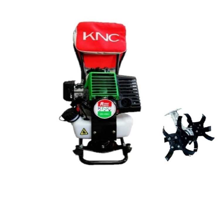 علف زن KNCیکی از بهترین دستگاه های علف زن موجود در بازار است که دارای کیفیت عالی و موتور قدرتمند است.علف زن KNCمدلKBC-40EU ساخت کره جنوبی می باشد و از نظر کیفیت یکی از با کیفیت ترین علف زن های بازار است. در این مدل علف از هندل های دو فنره استفاده شده که باعث استارت اسان دستگاه میشود و همچنین در این دستگاه از کاربراتور های اتوماتیک استفاده شده که باعث کاهش مصرف سوخت میشود . برای روشن کردن اسان دستگاه پس از منتاژ چند بار قسنت پلاستیکی شفاف زیر کربراتور (پرایمر)را فشار داده تا سوخت به کاربراتور برسد . در هنگام ترکیب کردن روغن و بنزین حتما نسبت را رعایت فرموده چون در صورت زیاد بودن روغن موتور رئوشن نمشود و در صورت کم بودن روغن دستگاه بد کار میکند اولین بار برای روشن کردن دستگاه مقداری کمتری روغن استفاده کنید و بعد از روشن شدن موتور سوخت باقی مانده در باک را تخلیه و سوختی جدید با نسبت های داده شده استفاده نمایید از حل شدن کامل روغن در بنزین مطمن شوید. در این مدل یک عدد الحاقی روتیواتور نیز قرار داده شده که میتوان از ان برای شخم زدن خاک استفاده کرد . این محصول علاوه بر دستگاه علف زن کامل ،یک دستگاه الحاقی روتیواتور (شخم زن) خاک را دارد که قابیلیت شخم زدن خاک را نیز دارد و برای ز ریشه در اوردن علف ها نیز مناسب و بسیار کاربردی است
