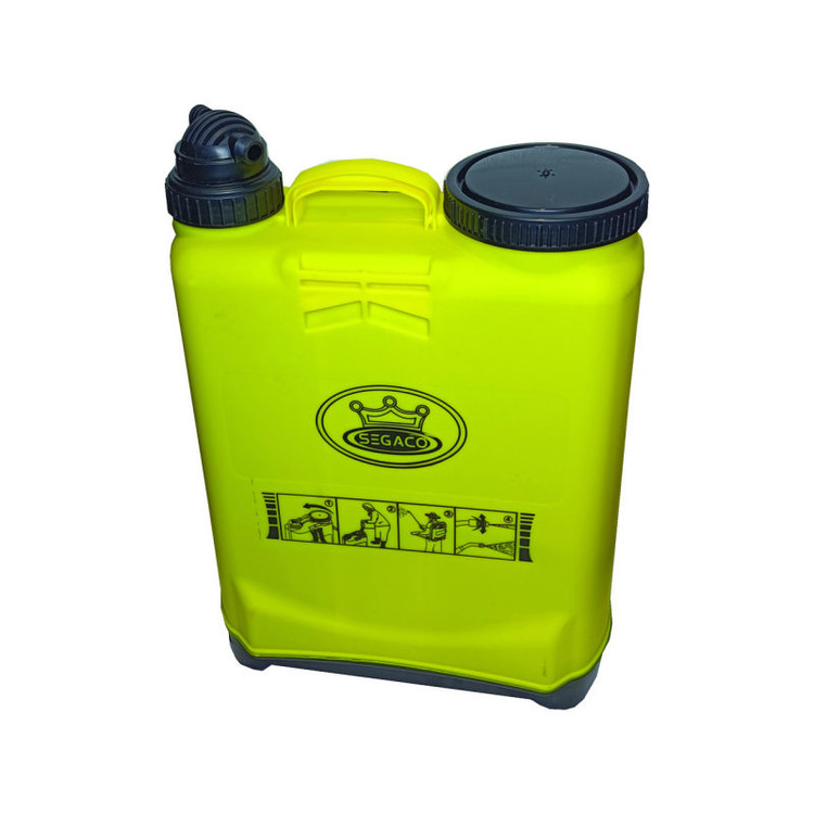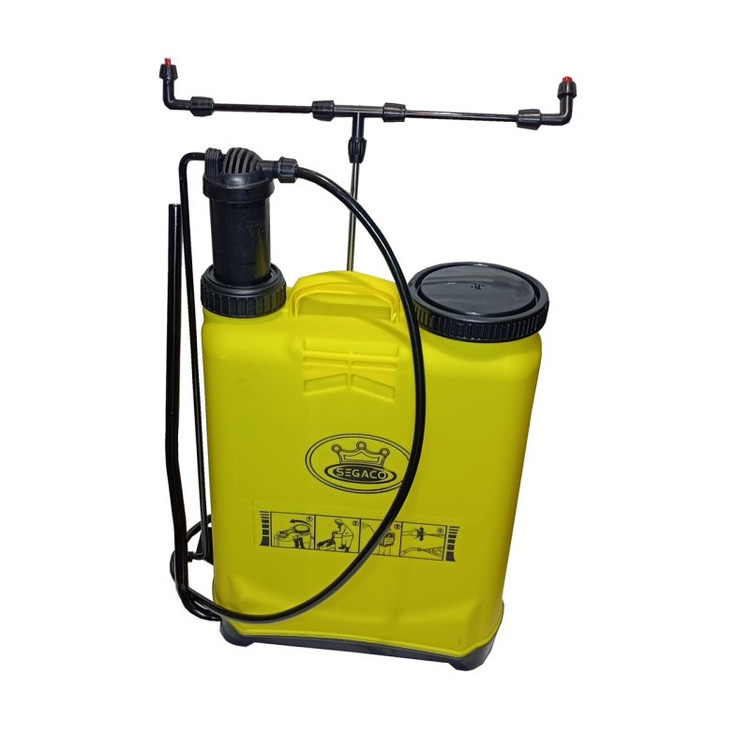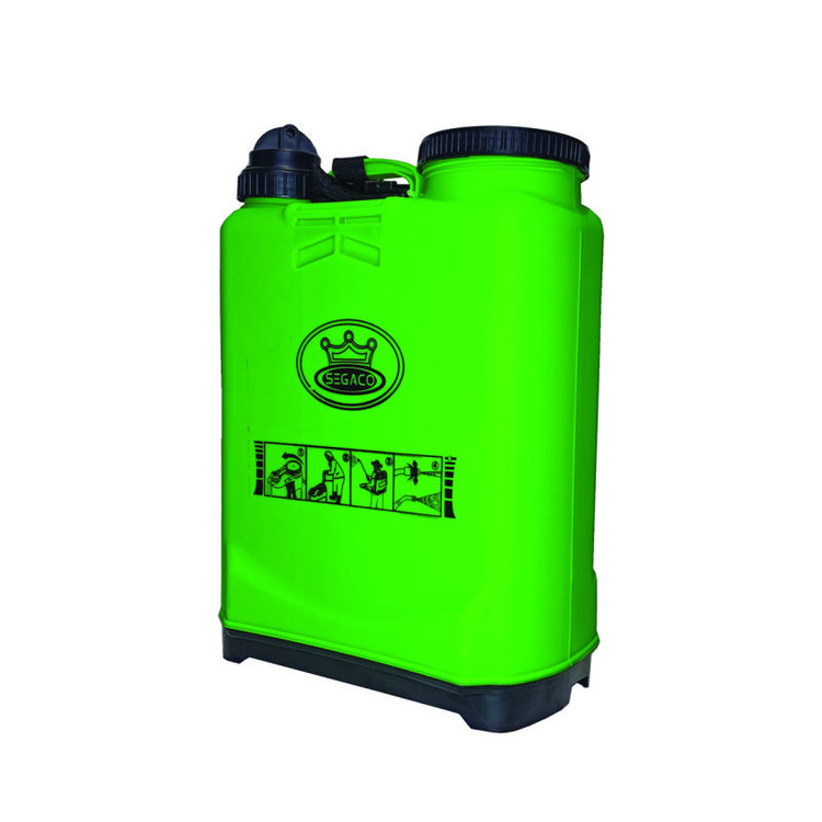 سمپاش دستی 20 لیتری سگاکو (SG)، در کنار راحتی که استفاده و حمل این محصول دارا می باشد، همچنین دارای کیفیت بسیار بالا از نظر جنس بدنه، پیستون و اورینگ بندی های داخلی می باشد که سبب شده تا این سمپاش ( محلول پاش) جهت کاربرد های از قبیل سمپاشی باغات ، مزارع و گلخانه ها و سم پاشی و ضد عفونی منازل و ساختمان ها و محیط های عمومی، برای پاشش و اسپری کردن سم، آب و محلول های مختلف تقویتی گیاهان مورد استفاده قرار بگیرد ( به جهت کاهش هزینه ها ، کاهش هزینههای کودپاشی و استفاده بهینه از مواد تقویتی و تغذیه گیاهان از طریق برگ، در حال حاضر، استفاده از سم پاش جهت پاشش و اسپری کردن محلول بر روی گیاهان بسیار مرسوم و مورد توجه قرار گرفته است) و همچنین برای کارهای دیگری غیر از آبپاشی و سمپاشی گل و گیاه، مانند مرطوب و ضد عفونی کردن محیط های مختلف و غیره بسیار کارآمد باشد. این محصول دارای بدنه مستحکم می باشد که در برابر ضربه مقاومت خوبی دارد، ضخامت بدنه سبب جلوگیری و عبور نور و امکان اثرگذاری بر روی محلول داخل مخزن می شود. همچنین دارای دو لانس و نازل فلزی با کیفیت و با دوام (لانس دوشاخه و تک شاخه)، دارای لوله لانس تلسکوپی جهت کوتاه و بلند کردن طول لوله می باشد و در ضمن از پیستون و تلمبه قوی و آببندی خوبی برخوردار است که سبب می شود با چندبار تلمبه زدن، حجم خوبی هوا در درون مخزن فشرده شود و با پاشش و شدت خوبی آب یا محلول مورد نظر را اسپری کند. این محصول دارای چندین نازل مختلف قابل تنظیم می باشد که با تعویض و یا چرخاندن نازل نصب شده ، امکان تنظیم مقدار و نوع اسپری کردن محلول را مهیا می سازد و با فشار دادن شاسی مربوطه ( دسته تفنگی بر روی لانس) امکان قطع و وصل اسپری محلول فراهم می باشد و همچنین این امکان وجود دارد که بتوان به صورت بدون توقف و بدون نیاز دائمی به فشار دادن شاسی ( با قفل کن قرمز رنگ)، عملیات پاشش را انجام داد. این محصول دارای دسته اهرمی تلمبه فلزی می باشد که عملیات تلمبه زدن را در حین انجام کار سمپاشی بسیار راحت کرده است، همچنین دارای بند برزنتی پشتی، جهت قرار گیری راحت مخزن به صورت کوله پشتی برای کاربر فراهم می کند.