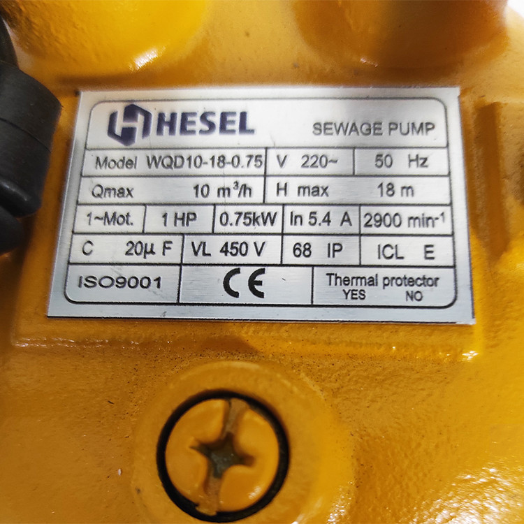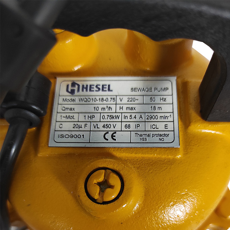قدرت: 1 اسب بخار/ 0.75 کیلو وات گشتاور: 2900 دور بر دقیقه کلاس ایمنی: IP 68 کد کالا : WQD10-18-0.75 برند : هسل کشور سازنده : ایران
