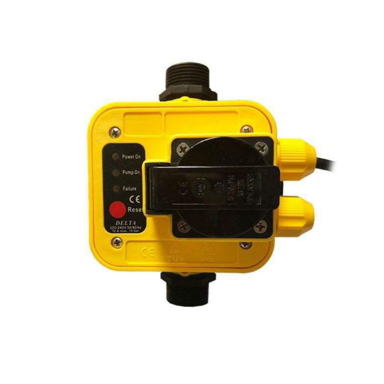 کلید اتوماتیک دیجیتال پمپ آب دلتا با فشار کاری 1 تا 10 بار میباشد.این کلید بدون نیاز به منبع دیافراگمی و قابل استفاده با پمپ های 0.5 تا 1.5 اسب بخار است و قابلیت خاموش کردن خودکار پمپ در هنگام قطعی آب را دارد. همچنین دارای شیر یکطرفه میباشد که مانع از برگشت آب پرفشار به داخل مخزن ذخیره و یا لوله ورودی آب شهری میشود.همچنین گیج نمایش دهنده فشار آب بصورت استاندارد بر روی این کلید نصب شده است.با استفاده از این کلید ، پنج راهی برنجی-اتوماتیک دستی - گیج فشار و منبع دیافراگمی از سیستم پمپ آب شما حذف میشود و از ایجاد هزینه های اضافه جلوگیری میکند. در ضمن لازم به ذکر است که این کلید نیازی به سرویس و تنظیمات دوره ای را ندارد.