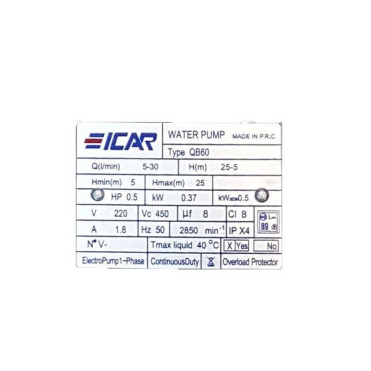 پمپ اب نیم اسب ایکار دارای سیم پیچ مسی و ساخت کشور چین می باشد.