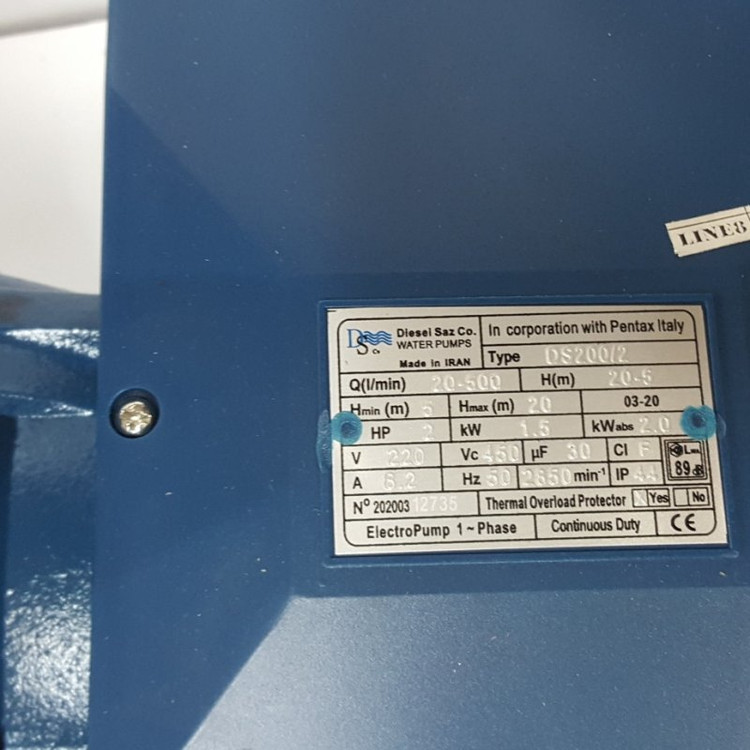نوع موتور دستگاه: الکتروپمپ تکفاز