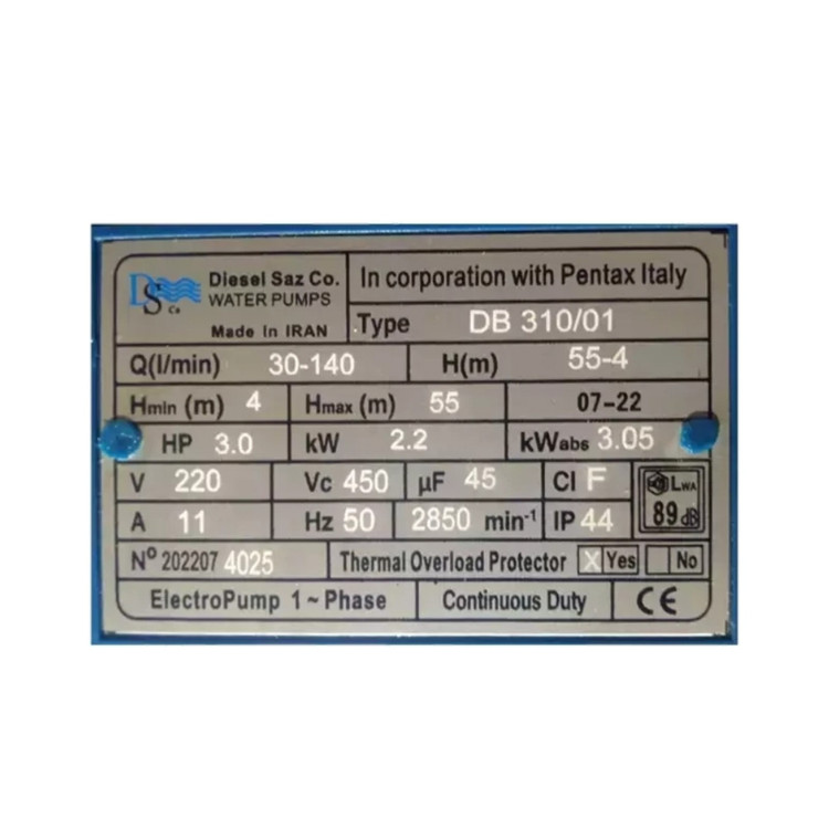 پمپ آب دیزلساز مدل db310/01 سه اسب دو پروانه