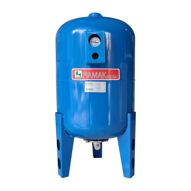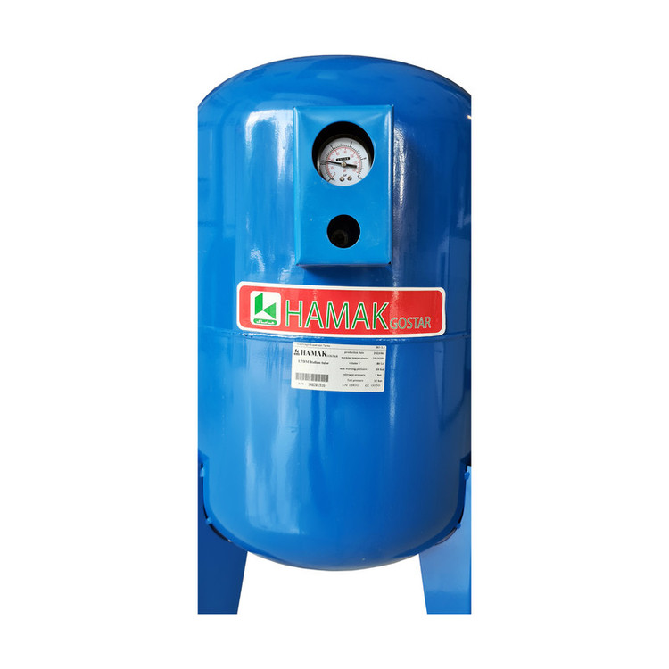 منبع آب تحت فشار 100 لیتری هاماک با درجه ساخت مشترک ایران و ترکیه با تیوپ سفا ایتالیاست . با کم شدن فشار آب در سالهای اخیر نیاز انسان به دستگاه های تقویت فشار آب بیش از پیش احساس میشود و دیگر پمپ ها به تنهایی قادر به رفع نیاز ما نیستند از همین رو برای جلوگیری از اصطکاک بالا و خرابی های مکرر ما نیاز به ابزار هایی دیگر همچون منابع تحت فشار داریم. منیع تحت فشار به واسطه آبی که درون خود ذخیره می کند موجب می شود تا با هر بار باز شدن شیر آب نیاز نباشد پمپ آب شروع به کار کند. در نتیجه باعث کاهش مصرف برق و استهلاک پمپ آب شده و طول عمر پمپ را افزایش می دهد. همچنین این منبع ضربه آب در زمان روشن و خاموش شدن مکرر پمپ را کنترل می کند. منبع تحت فشار 100 لیتری هاماک با آبی که داخل خود ذخیره میکند و فشار هوای داخل تیوب مخزن از خاموش و روشن شدن متعدد پمپ در هربار باز و بسته شدن شیرهای آب جلوگیری میکند که خود باعث افزایش طول عمر پمپ آب شما میشود. مخزن تحت فشار 100 لیتری هاماک بهترین انتخاب برای تعداد 10 تا 14 واحد است و فشار آن با توجه به متراژ و تعداد طبقات متغیر است . مخزن تحت فشار دارای سایز های مختلف از 24 تا 1000 لیتر است که برای شرایط مختلف استفاده میشود
