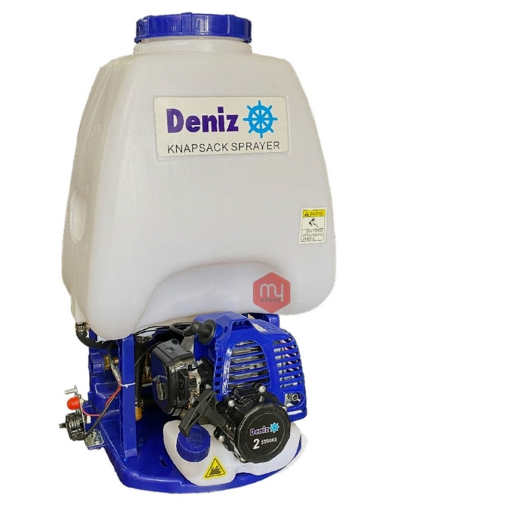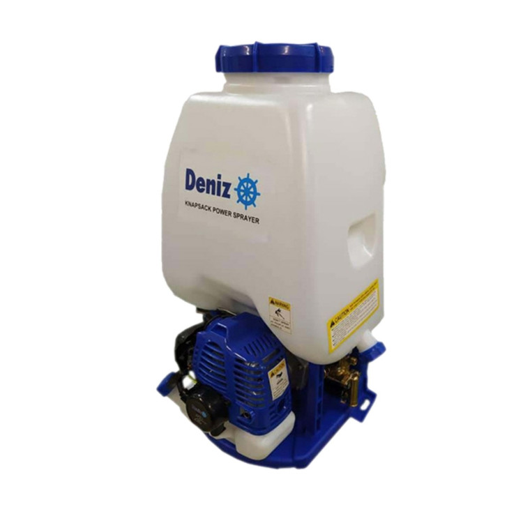 در سمپاش پشتی موتوری دوزمانه دنیز به دلیل داشتن موتور دو زمانه، روغن و بنزین در یک مخزن مشترک ریخته می شود. حمل این سمپاشِ بنزینی به صورت کوله پشتی و کاملا” ارگونومیک است به طوری که به راحتی روی شانه های کاربر قرار گرفته و عملیات سمپاشی انجام میشود. این سمپاش از نوع لانس دار است. سمپاش پشتی موتوری دارای مخزن پلی اتیلن با ظرفیت 20 لیتر است. مدل موتور سم پاش دنیز TU26 و قدرت آن یک اسب بخار میباشد. سیستم استارت سمپاش DENIZ هندلی (به صورت دستی) و پمپ آن از نوع پیستونی فشار مستقیم است. ظرفیت باک این سمپاش 650 میلی لیتر می باشد.