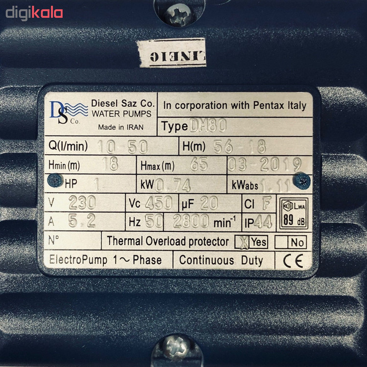 الکتروپمپ دیزل ساز مدل DM80 با مشارکت شرکت پنتاکس ایتالیا تولید می شود . پمپ آب DM80 دیزل ساز با قدرت 1 اسب و با گشتاور 2800 دور در دقیقه قادر به ایجاد فشار آب تا ارتفاع حداکثر 65 متری و آبدهی 10 الی 50 لیتر در دقیقه می باشد . جنس پروانه این پمپ برنجی و دارای شافت استنلس استیل می باشد و قابلیت عملکرد با دمای آب تا 90 درجه سانتی گراد را دارد . پمپ آب DM80 دارای ترموستات حراراتی (OVERLOAD) بوده که در صورت قطعی آب و یا ایجاد گرمای زیاد در موتور بصورت اتوماتیک پمپ خاموش می شود . پمپ DM80 دارای عملکرد دائمی (CONTINUOUS DUTY) بوده و قابلیت کارکرد در مدت زمان طولانی را دارا می باشد . این پمپ برای مصارف صنعتی و کشاورزی و همچنین آبرسانی مسکونی و آپارتمانی تا طبقه هشتم ساختمان مناسب می باشد . از نکات مهم جهت افزایش طول عمر تمامی الکتروپمپ های سانتریفیوژ نصب افقی و صحیح و در مکان ثابت می باشد . همچنین استفاده از شیر صافی در ورودی پمپ جهت ورود آب زلال و شیر یکطرفه در خروجی پمپ به منظور پیشگیری از برگشت آب در پمپ توصیه می گردد . شایان ذکر است تمامی قطعات و لوازم یدکی پمپ آب DM80 موجود بوده و قابلیت تعویض دارد . الکتروپمپ DM80 دیزل ساز دارای بالاترین نشان استاندارد اتحادیه اروپا CE می باشد .